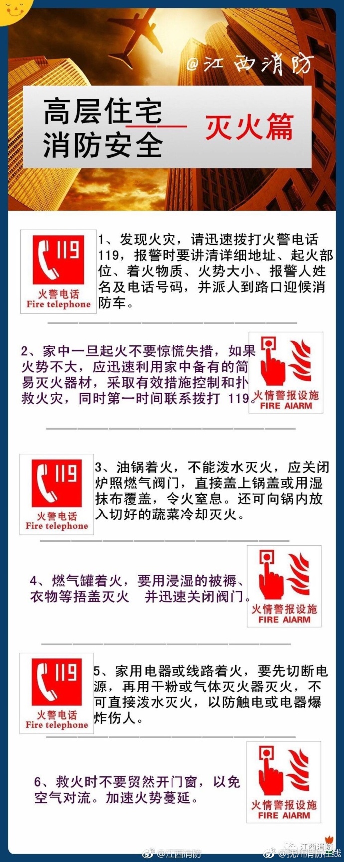 高层住宅近几年已经成为广大购房者的青睐。而高层住宅的火灾隐患却常常被大家忽视。住在高层,万一发生火灾怎么办?!看图