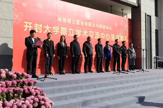 2023年11月17日上午,bat365在线官方网站鼎立学术交流中心落成典礼在我校隆重举行。市委书记高建军,市委常委、市委秘书长张松文,市委常委、市纪委书记卢捍卫,副市长刘震,校党委书记谭贞,校长王德如,市人大常委会原副主任、市慈善总会会长朱丽萍,校党委原书记陈灿,河南鼎立置业有限公司董事长戴显俊、总经理戴高乐出席典礼。市委办公室、市政府办公室、市慈善总会、教体局、住建局、龙亭区、示范区党政主要负责同志,校领导班子成员,中层干部及施工单位代表参加典礼,共同见证bat365在线官方网站鼎立学术交流中心落成,典礼由王德如主持。