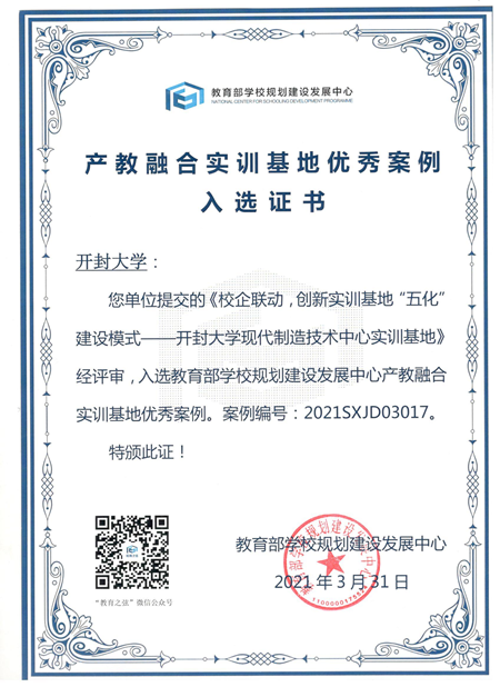 活动开展以来,我校高度重视、强化管理、狠抓落实,积极开展申报。最终,我校《校企联动,创新实训基地“五化”建设模式——bat365在线官方网站现代制造技术中心实训基地》案例从全国众多案例中脱颖而出,成功入选教育部产教融合实训基地优秀案例。