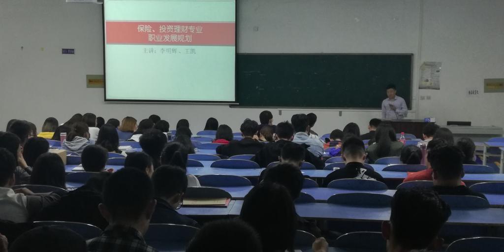2018年10月22日,财政经济学院在15号楼203为保险、投资理财专业师生举办了一场别开生面的职业发展规划讲座,邀请中国人民保险集团开封公司财险部经理王凯、星恒保险代理开封营业部经理李明辉主讲,主要由保险、投资理财专业老师和大一、大二学生参加。