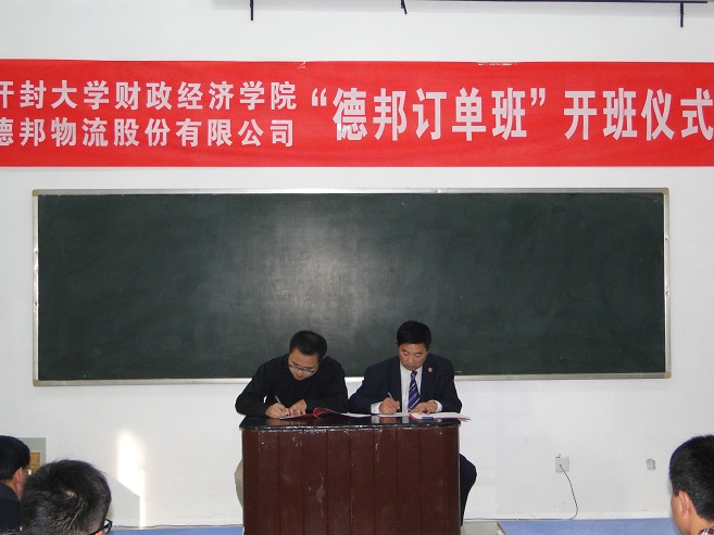 经过前期的友好磋商,10月25日上午,财经学院与德邦物流股份有限公司就学生实习实训、订单式培养、就业合作等校企合作事宜举行了隆重的“德邦订单班”开班及签约仪式。副校长万是明、德邦物流股份有限公司上海事业部大区总经理杨森及学校招生就业处、财经学院的部分领导,首批订单班40名学生出席了开班仪式。