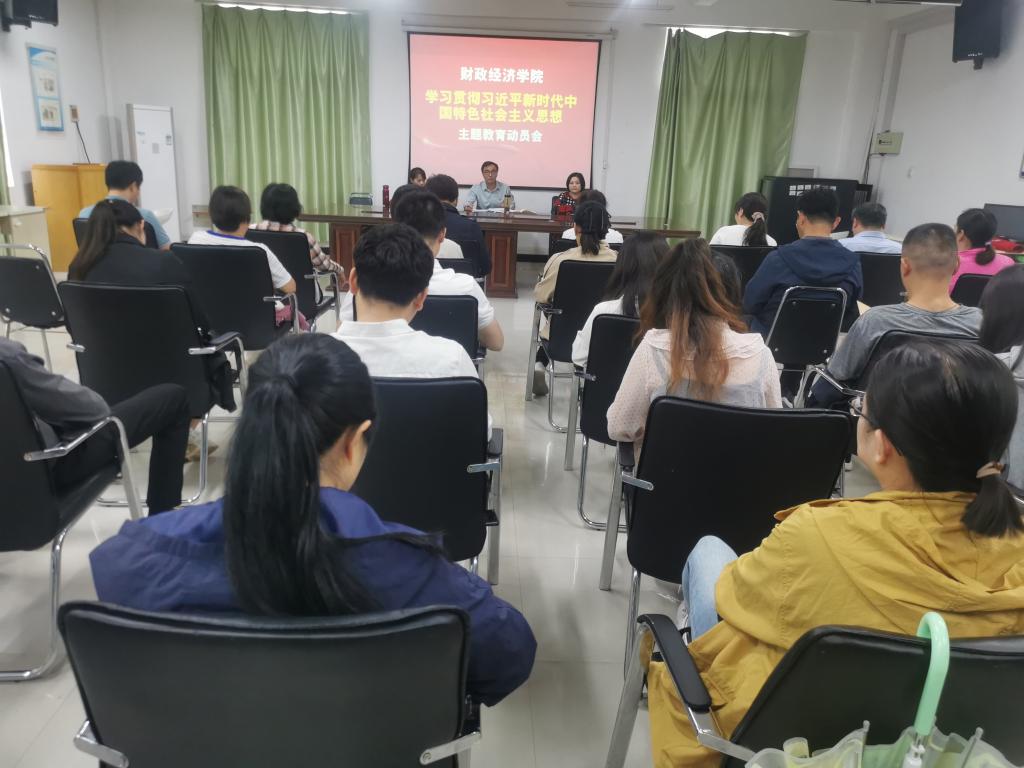 9月25日下午3点,财政经济学院在214会议室召开学习贯彻习近平新时代中国特色社会主义思想主题教育动员会,会议由第一教工支部书记崔芸老师主持,院部领导和全体党员老师参加会议。