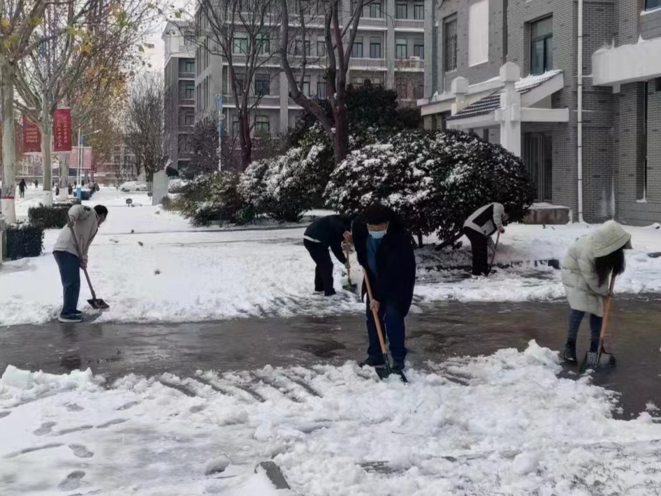 经过约一小时的劳动,学院楼前主要道路、楼宇周围道路积雪全部清理完毕,为师生创建了一个安全、美丽的校园环境。