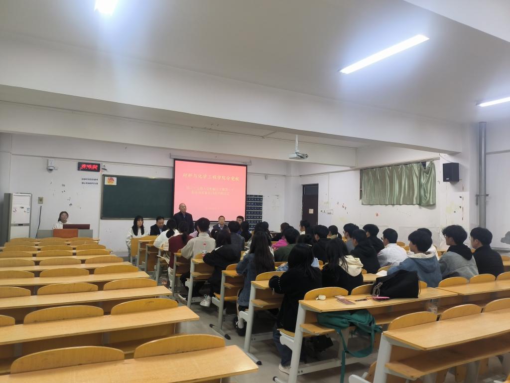 为加强青年学生的思想政治教育,培育新时代青年党员,引导他们树立正确的世界观、人生观和价值观,4月2日晚上7:30,材料与化学工程学院在7号楼206教室举行第69期入党积极分子暨第20期发展对象培训班开班仪式。学院党总支书记侯彦喜、副院长王丽、学生支部成员参加,仪式由团总支书记杨磊主持。