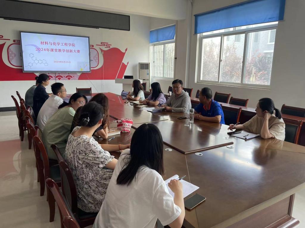 为落实立德树人根本任务,深化“三教改革”,“岗课赛证”综合育人,全面促进教师教学能力提升,材料与化学工程学院于6月26日下午,在7号楼201会议室举办课堂教学创新大赛初赛。
