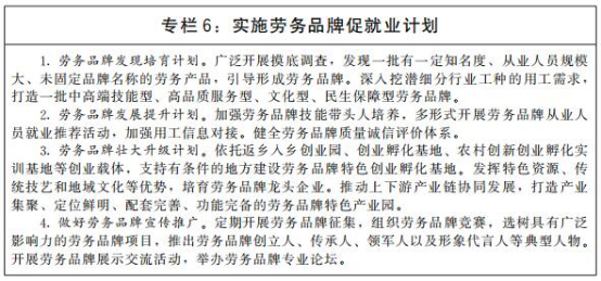 (十一)高度重视城镇青年就业。 为城镇青年创造多样化就业机会。聚焦城镇青年(主要包括未继续升学初高中毕业生、城镇失业青年、转岗青年职工等,下同),完善就业支持体系。在推动先进制造业、现代服务业和劳动密集型产业发展中,开发更多适合城镇青年的就业岗位,带动更多城镇青年到新产业新业态新商业模式领域就业创业。对接产业优化布局、区域协调发展和重点行业企业人才需求,完善人力资源需求发布、要素配置、协同发展机制,支持城镇青年到人才紧缺领域就业。 增强城镇青年职业发展能力。发挥就业创业服务机构、产业企业园区、青年之家、青年活动中心等各类平台作用,支持城镇青年参加职业指导、职业体验、创业实践、志愿服务等活动。探索组织青年职业训练营、就业训练工场。打造适合城镇青年特点的就业服务模式,畅通信息服务渠道,提高择业精准度。 强化城镇青年就业帮扶。实施青年就业启航计划,对城镇长期失业青年开展实践引导、分类指导和跟踪帮扶,促进其进入市场就业创业。将劳动精神、奋斗精神融入指导和实践,引导城镇青年自强自立。为城镇困难失业青年提供就业援助。 (十二)加强退役军人就业保障。 改革完善退役军人安置制度。科学制定安置计划,改进岗位安置办法,推进落实安置政策,压实属地安置责任,规范接收安置程序,提高安置质量。优化安置方式,探索市场化安置改革,实现多渠道、多元化安置。推广“直通车”式安置,健全“阳光安置”工作机制。鼓励到艰苦边远地区和城乡基层安置。加强各种安置方式统筹协调,强化政策制度衔接。 支持退役军人自主就业。将退役军人按规定纳入现有就业服务、教育培训等政策覆盖范围。探索推开“先入校回炉、再就业创业”的模式,鼓励符合条件的退役军人报考高职学校,落实招收、培养、管理等方面的扶持政策。适时调整退役军人就业岗位目录。协调各方资源,加强行业企业合作,拓展就业供给领域,挖掘更多适合退役军人的就业岗位,促进退役军人到民营企业就业。实施“兵支书”协同培养工程,推动退役军人在乡村就业。设立退役军人就业实名台账,强化退役军人服务中心(站)就业服务功能,及时提供针对性服务。 (十三)推进农村劳动力转移就业。 稳定和扩大农村劳动力外出就业规模。广泛开展区域间劳务协作,健全劳务输入集中区域与劳务输出省份对接协调机制,加强劳动力跨区域精准对接,发展劳务组织和经纪人,有序组织输出地农村劳动力外出务工。培育一批有地域特色、行业特征、技能特点,带动农村劳动力就业效果好的劳务品牌。实施农民工素质提升工程,推进新生代农民工职业技能提升计划。创建一批农村劳动力转移就业示范县。