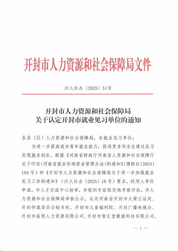 今年7月,依据《河南省财政厅 河南省人力资源和社会保障厅关于印发<河南省就业补助资金管理办法>的通知 》(豫财社〔2024194号)以及《开封市人力资源和社会保障局关于进一步加强就业见习工作的通知》(汴人社办〔202518号)的要求,经过用人单位申请、市人才交流中心初审,以及专家组对见习场所、管理制度、师资配备、经营管理等多方面的严格考察评审,开封市智汇堂数据科技有限公司成功被认定为开封市市级就业见习单位。成为就业见习单位后,公司将为离校两年内未就业高校毕业生以及1624岁登记失业青年提供宝贵的就业见习岗位,助力青年群体提升就业能力,积累工作经验。