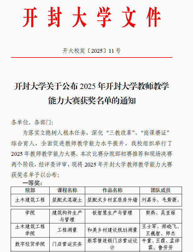 王霞老师团队获得一等奖