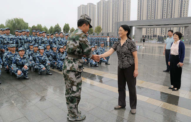 校领导冒雨慰问2019级新生和军训教官