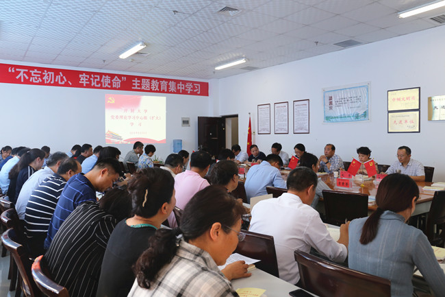 最后,校党委书记陈灿对“不忘初心、牢记使命”主题教育集中学习提出四点要求。一是确保高质量的完成学习任务,坚决按照主题教育的相关要求,把深入学习贯彻习近平新时代中国特色社会主义思想作为重中之重、贯穿始终。要聚焦主题来学习、聚焦问题来学习,保证学习时间;二是确保以有效的学习方法保证学习实效,要开展集中学习、以会代学、微党课、深入基层宣讲、深入研讨、在调研考察中学习等多种形式保证学习效果,深刻理解习近平新时代中国特色社会主义思想的核心要义、精神实质、丰富内涵和实践要求,坚持学在深处、谋在新处、干在实处,坚持理论联系实际的学风,用马克思主义的立场、观点、方法研究新情况、解决新问题,真正学出高质量、学出好效果;三是确保以端正的学习态度达到学习目的,排除学习干扰、严守学习纪律,沉心静气研读,做到全身心投入,要把思想摆进去、把工作摆进去、把自己摆进去,扛牢自己的工作职责,借助原来的工作成绩和传统,发扬坚韧不拔的优良作风;四是统筹推进,要工作学习两不误、两促进。要把握“十二字”总要求,紧扣“五句话”目标,坚持“四个贯穿始终”,按照学校主题教育实施方案安排,深入扎实推进主题教育工作的有序进行,确保主题教育实现预期目标。认真学习借鉴第一批主题教育进“四项重点措施”的好做法好经验,体现连续性、把握规律性、注重统筹性、着力实现学做结合,查改贯通,把各项重点措施做扎实、抓出成效。为开封再放异彩、中原更加出彩贡献开大力量,展示开大风采。
