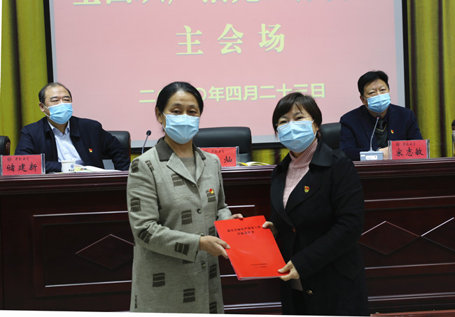 各院院长向宋志敏校长递交《2020年度目标责任书》《2020年平安校园建设目标责任书》
