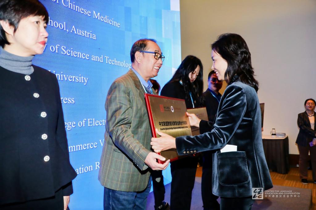 校党委书记谭贞为“中文联盟数智化教学金牌项目”获奖者颁奖