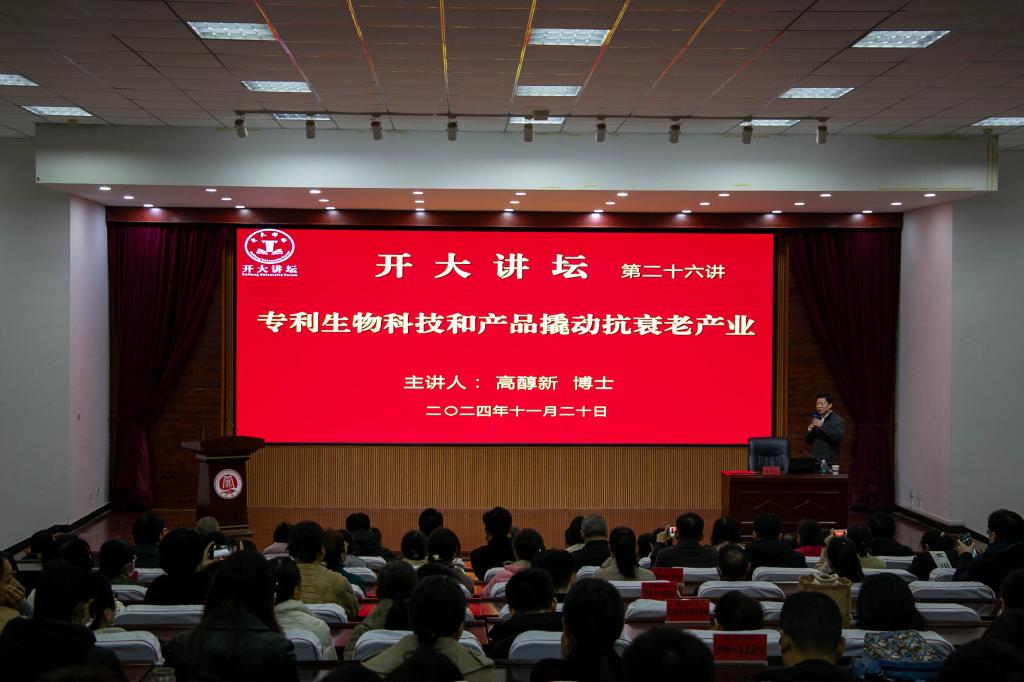 11月20日上午,bat365在线官方网站医学院名誉院长聘任仪式暨“开大讲坛”系列报告会顺利举行。健科国际股份有限公司创办人兼行政总裁高醇新博士作了题为《专利生物科技和产品撬动抗衰老产业》的专题报告。市卫健委党组书记、主任刘建宏,bat365在线官方网站党委书记谭贞出席会议。会议由校长王德如主持。
