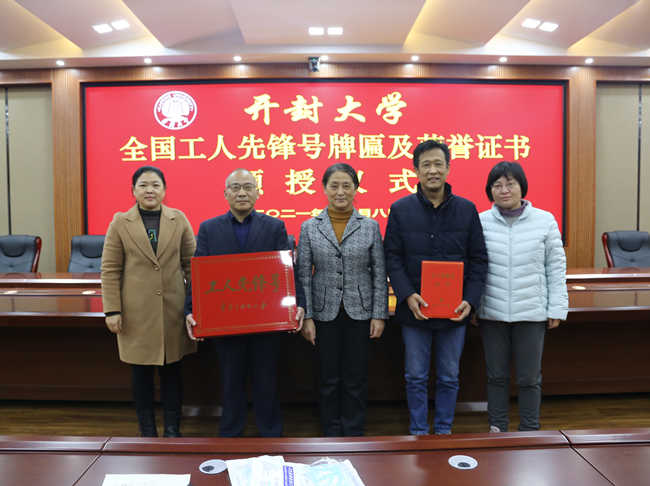 近日,我校在行政楼第二会议厅举行全国工人先锋号奖牌、荣誉证书及2021年全省教学技能竞赛奖章、荣誉证书颁授典礼仪式。校党委书记陈灿,校长宋晓炜,校党委委员、工会主席成芳出席了仪式,并为获奖的先进集体和个人颁授了奖牌奖章和荣誉证书。
