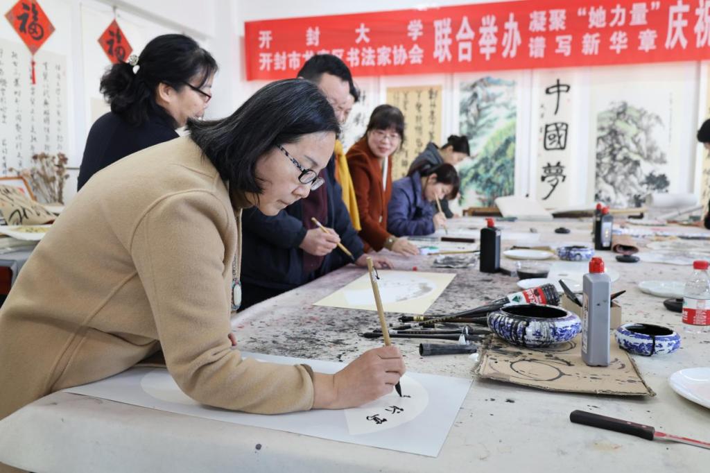 阳春三月,草长莺飞。为庆祝第114个“三八”国际劳动妇女节,3月8日上午,我校在行政楼教职工书画活动室举办书画笔会活动。活动邀请了龙亭区书法家协会主席杨惠武,河南省美术家协会会员张芳、张利华、张娟等4位艺术家。校党委委员、工会主席成芳,党委宣传部和相关职能部门负责人出席活动,校女教职工书画爱好者及部分学生书画爱好者四十余人参加了此次活动。