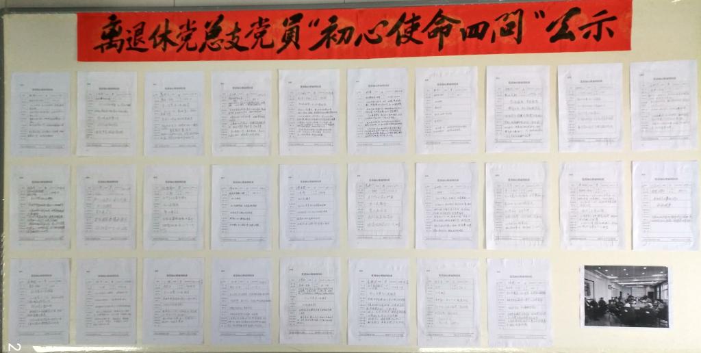 老党员们认真填写了《党员初心使命四问表》,对照《党员初心使命四问表》,认真思考、反省自问“入党初心是什么、党员使命担什么、对照先进差什么、立足本职做什么”四个问题,深入分析查找自身存在的不足,在对表对标中“找差距”、“补短板”。大家在回顾入党初心的同时,坚信了理想信念和追求,并庄重承诺“不忘初心 牢记使命”, 现在个人虽然因到龄退休了,但坚定信念、艰苦奋斗、创业敬业的精神不能丢,要时刻牢记初心使命,永葆共产党员的先进性,以实际行动践行初心和使命,为学校事业发展,为实现中华民族伟大复兴中国梦奋斗终身!