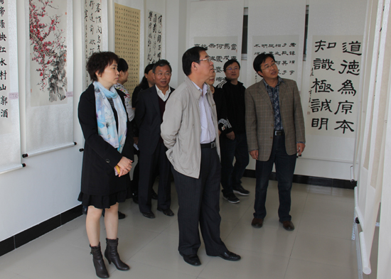 校领导拜五四、范金梅、何世玲、成芳,部分教职工和学生参观了作品展。拜校长对书画摄影作品展给予了充分的肯定,并指出这次作品展体现了我校精神文明建设成果,营造了和谐的校园文化氛围。