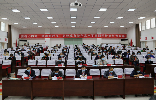 校党委委员、工会主席成芳以《团结动员全校教职工为“双高”建设再立新功》为题向大会做了工会工作报告,对2019年的工会工作进行总结,对2020年的工作进行展望。她讲到成绩的取得,得益于学校党委的正确领导,得益于校行政倾心支持,得益于市总工会的悉心指导,得益于学校各部门、各院部的协助配合,得益于广大工会干部和教职工的齐心团结。做好我校工会工作,必须做到始终坚持党的领导;始终坚持围绕中心服务大局;始终坚持竭诚服务教职工群众;始终坚持改革创新。2020年要按既定的目标任务,以坚定的政治性引导教职工,以鲜明的先进性组织教职工,以广泛的群众性凝聚教职工,着力打造更具引导力、创新力、凝聚力、服务力的工会组织,团结动员教职工为学校“双高”建设再立新功。