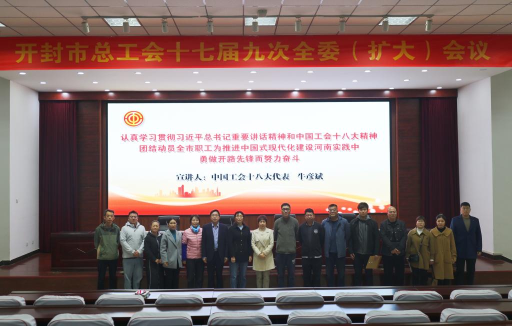 11月9日上午,校工会组织部分工会干部,参加开封市总工会第十七届九次全委(扩大)会议,认真学习贯彻习近平总书记重要讲话精神和中国工会十八大精神。