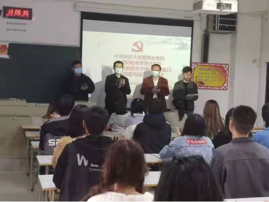 学院党总支副书记赵骅宣布了党课纪律及相关规章制度,希望每一位新学员可以端正学习态度,遵守课程安排,课后善于总结,认真参加分党校组织的一切活动,争取早日入党。仪式结束后,赵部长为学员们上了第一课——《党的纲领》。