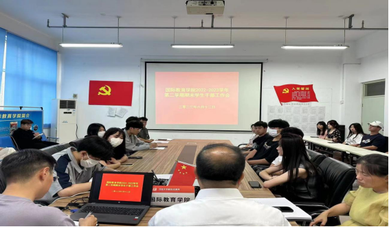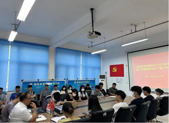 6月12日下午,国际教育学院召开期末学生干部工作会议,对学生安全、期末及暑期学生工作安排进行相关部署,对学生干部提出了具体要求。学院党总支副书记赵骅、团总支书记许亚威出席本次会议,会议由21级辅导员马英主持。