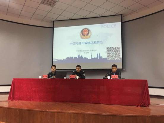 随后,保卫处结合本部门业务特点邀请了开封市公安局防诈骗工作专家为国际教育学院师生开展了专题讲座。讲座中,国际教育学院学生党支部联系人贾晨阳向师生通报了我校扫黑除恶专项斗争的开展情况,并公布了“扫黑除恶”线索举报电话,鼓励同学们拿起法律武器来维护自身的权益。开封市公安局犯罪侦查支队二大队大队长朱冰和反虚假信息诈骗中心副主任张连鹏以“电信网络诈骗特点及防范”为题,结合发生在我市高校中真实的案例,向师生讲述了校园贷、网络刷单等8种常见的电信诈骗手段及应对措施。告诫师生不贪图小利,提高分辨是非的能力,保护好自己的人身以及财产安全。最后,参会警官向师生发放了防诈骗宣传册。