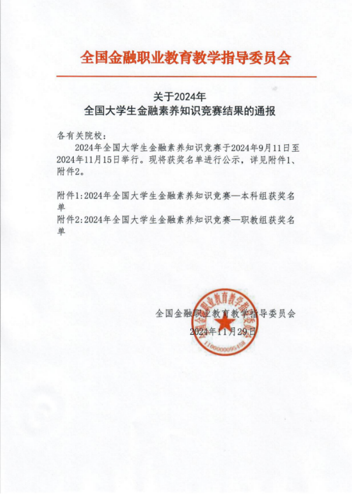 近日,2024年全国大学生金融素养知识竞赛落下帷幕,我校国际教育学院(外国语学院)学子表现优异,荣获一等奖1项,三等奖3项。
