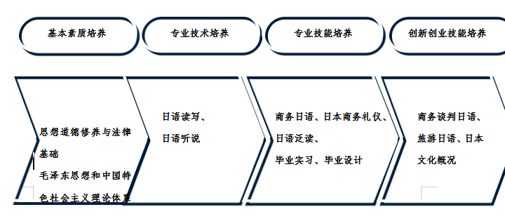 本专业人才培养方案采用“平台+岗位”式人才培养模式,培养德智体美劳全面发展,具备比较扎实的日语语言基础和听、说、读、写、译等方面的基本技能;具备中外语言和文化沟通能力及中外人员之间的协调组织能力;具有良好的日语文案处理能力,并且具有一定的综合英语水准;具有良好的职业道德素养及行业准入资格;了解日本政治、经济、历史、文化等方面的学科知识;能在和专业相关的外经贸、外事、国际文化交流等行业承担商务翻译、商务文秘、日语导游等工作内容,具备较强实践能力和职业可持续发展能力,具有时代特色的高素质复合型技术技能人才。