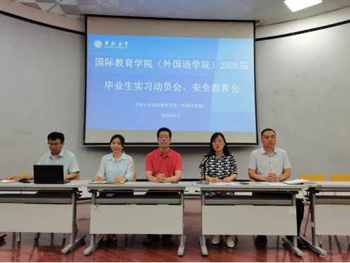 为进一步扎实推进毕业生实习工作,强化安全意识,bat365在线官方网站国际教育学院(外国语学院)于6月12日下午在南5报告厅隆重召开2026届普通专业毕业生实习动员暨安全教育大会。学院领导班子、商务英语、应用英语教研室主任、毕业班辅导员出席会议,商务英语、应用英语专业全体毕业生参会,会议由院长蒋大山同志主持。