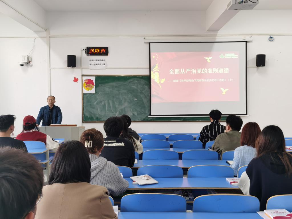 2023年3月29日,副校长李治深入国际教育学院为师生党员、积极分子、发展对象在15号楼219教室上党课,深入解读了《关于新形势下党内政治生活的若干准则》。