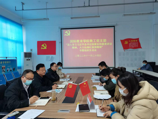 2022年11月24日,国际教育学院教工党支部召开了“深入学习习近平总书记视察安阳重要讲话精神,大力弘扬红旗渠精神”专题组织生活会,会议由王丽同志主持。