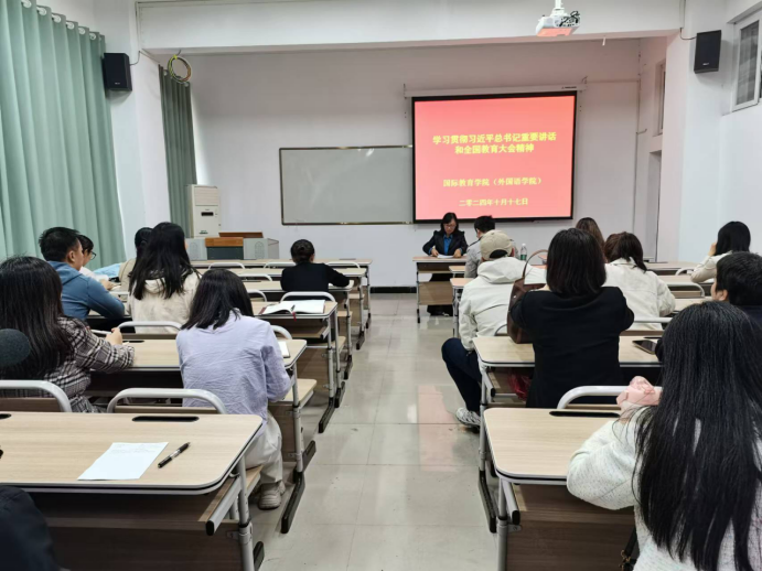 为深入学习贯彻习近平总书记在全国教育大会上的重要讲话精神,进一步统一思想、凝聚共识,推动我院教育事业高质量发展,国际教育学院(外国语学院)于10月17日组织全体教师集中开展了专题学习活动。活动由学院党总支书记程欣同志主持并领学,全体教师积极参与,学习态度认真。