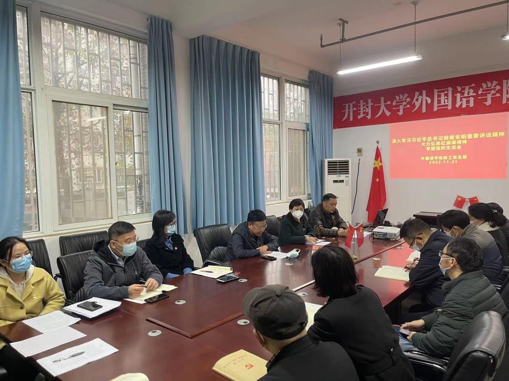 为深入学习习近平总书记视察安阳重要讲话精神,大力弘扬红旗渠精神,外国语学院教工党支部于11月27日下午召开专题组织生活会,校党委委员、副校长万是明同志以普通党员身份参加会议。