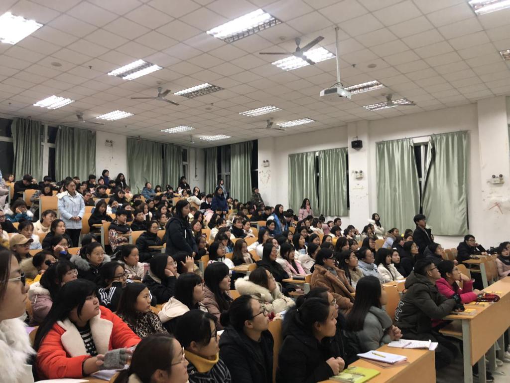 1211晚上我院在17号楼508室进行了张玉滚同志先进事迹报告会我院团总支副书记康慧敏为大家讲述张玉滚同志的事迹,一件件一桩桩爱护学生、专心教学、默默坚守的奉献故事,情动之处,台上台下纷纷擦拭眼泪。他的事迹感人至深,激励着外事干部见贤思齐,教育党员群众立足岗位无私奉献;通过他的事迹与视频接触省委号召全省深入广泛学习的“时代楷模”,感受着张玉滚同志身上散发出的朴实魅力和精神内核,全院同学深受教育和鼓舞,进一步筑牢了理想信念,学习了张玉滚同志的不忘初心、潜心教学、精心育人、艰苦奋斗优秀精神