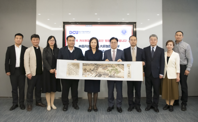 4月29日,访问团到韩国大邱加图立大学进行访问,校长成汉基教授、国际处尹锺寅处长、国际交流中心主任宋斗鎭等热情接待。