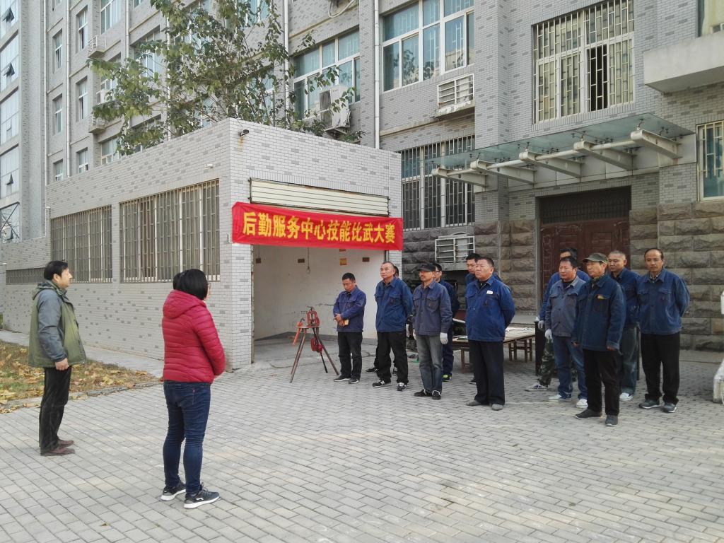 为进一步提高后勤服务中心维修科各岗位工种人员的技术业务素质,激发广大职工“争先创优 干事创业”的积极性,11月23日下午,后勤服务中心组织水电维修人员在17#教学楼西侧开展了岗位技能比武大赛,后勤服务中心主任、书记等领导到现场观摩了大赛。