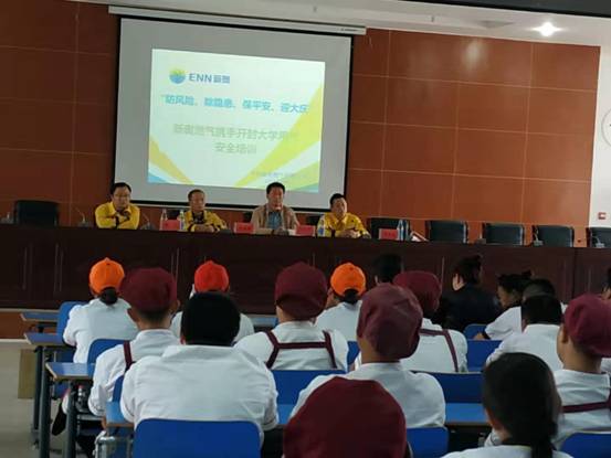 下午,bat365在线官方网站后勤管理服务中心在校土木学院六楼报告厅为学校食堂从业人员进行了燃气安全知识培训,后勤管理服务中心徐纪珂主任、新奥燃气安全管理部闫书胜主任、安全管理高级讲师邱治国、安全管理专员杨博出席了此次培训会。