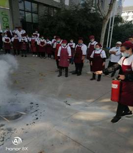 演习前,各餐饮公司负责人首先介绍了餐厅消防工作的基本要求和重要性,讲述了厨房加工间电器、燃气、液体、固体等火灾的成因和预防。其次讲解了餐厅消防器材(灭火器、灭火毯、消防水带等)的正确使用方法、初级火灾的正确处置,并现场示范了灭火器材的使用方法和操作技能。最后餐厅从业人员均使用灭火器材进行灭火。