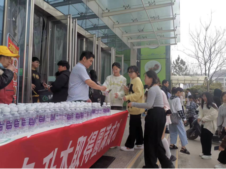 4月1日我校“专升本”考试如期而至,为了能让学生安心考试,后勤管理服务中心饮食管理部加大管理力度,确保为师生提供安全、可口、营养均衡的饭菜和温馨舒适的就餐环境。饮食管理部在餐饮服务、食品卫生、菜品质量、菜品多样性等方面加强管理让考生吃的放心、吃的舒心。同时为了让同学们保持良好的状态,以饱满的信心冲刺应考,中午在东苑餐厅西门对考生免费发放饮用水,全力为考生做好服务保障工作。