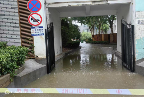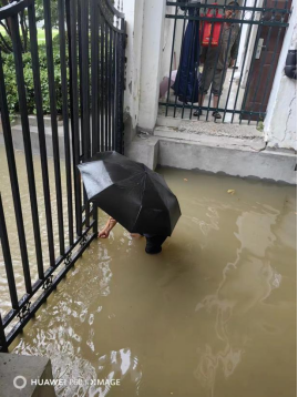 7月8日上午,随着雨势增强,我校多处低洼地段的道路已积水,尤其是5-8号宿舍楼西大门较低处,积水颇深,存在较大安全隐患,虽然已立上警示牌,拉上警戒线,及时关闭院大门,但宿舍工作人员依然雨中值守巡视,防止学生路过滑倒摔伤,做到防患于未然。此外,宿管部又开启了宿舍楼连廊通道保障学生能够正常通行。