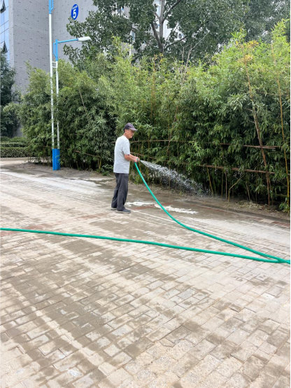 与此同时,对整个校园内的乔木进行叶面灰尘冲洗工作,并且开启全范围卫生保洁工作,确保没有落叶枯枝和白色垃圾,为全体师生打造干净卫生,整洁优美的校园环境。