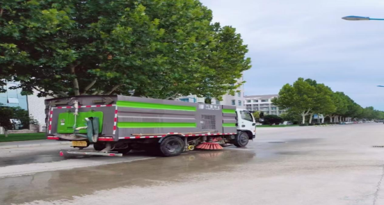 3、为保障环境,使用大型机械对校园道路进行洒水;