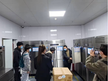 学生代表在饮食管理部老师的带领下来到餐厅内部,依次参观了食品留样、洗碗间、食堂的主副食品仓库并深入操作间参观食品存放、烹饪加工、食材储备等环节的工作流程。抽查了食堂的生、熟冰箱,食堂各项记录及索票索证记录等信息。学生边听边了解,并对学生餐厅精细化管理工作予以肯定。