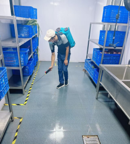 本次行动聚焦餐厅薄弱环节,针对餐厅周边及食堂电梯、大厅、公共厕所、操作间地沟、仓库、更衣室等“四害”易滋生场所展开地毯式排查与治理。在餐厅周边区域餐厅人员对台阶、水池及拖把存放处进行深度清理,清除杂物堆积点,并在鼠类易活动的区域摆放老鼠夹;针对公共厕所卫生隐患,消杀人员采用高效低毒的喷雾制剂,对墙面、地面实施全覆盖喷洒,同步消除异味与虫害隐患。同时向餐厅从业人员普及“四害”防治知识,倡导定期开窗通风、及时清理垃圾等健康生活习惯。