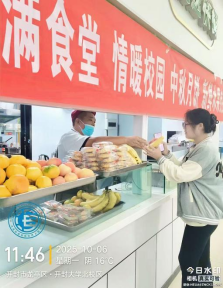 月满食堂,情暖校园。为让留校师生在佳节之际感受浓浓暖意,10月6日,bat365在线官方网站后勤服务中心联合东苑餐厅海成餐饮,开展“中秋暖心赠礼”活动,将满载心意的月饼与新鲜水果送到师生手中,用舌尖上的温情点亮校园中秋记忆。