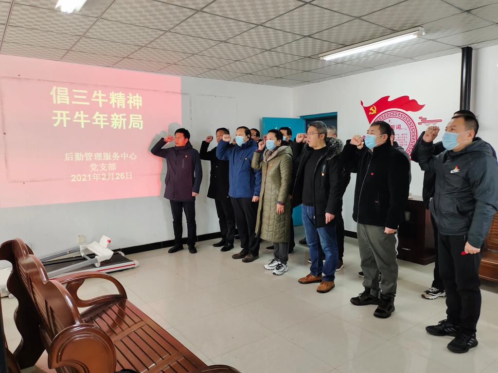 2月26日,后勤管理服务中心党支部组织全体党员在大会议室开展“倡三牛精神 开牛年新局”主题党日活动。