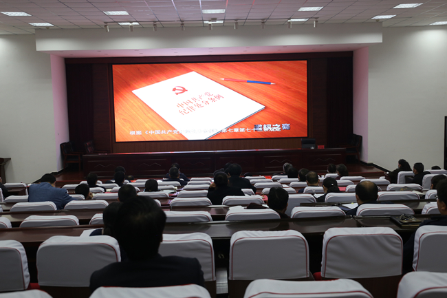 全体与会人员共同观看党风廉政教育警示片《滥权之殇》