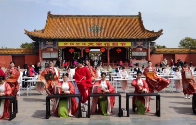 本站讯  4月6日上午,2023中国(开封)清明文化节非遗宋代茶艺展演及大宋北苑品鉴活动在龙亭公园午朝门广场举行。我校48名学生参加此项展示活动,校长宋晓炜、副校长李治受邀出席活动,就业与校企合作处、旅游学院负责人及相关教师参加活动。