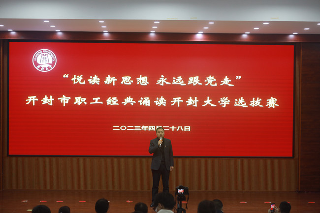 本站讯 为深入学习贯彻习近平新时代中国特色社会主义思想和党的二十大精神,认真落实中央、省委、市委关于推进全民阅读、建设书香开封的重要决策部署。4月28日上午,校工会在行政楼第一会议厅举办“悦读新思想 永远跟党走”开封市职工经典诵读活动bat365在线官方网站选拔赛。校党委委员、工会主席成芳出席活动。