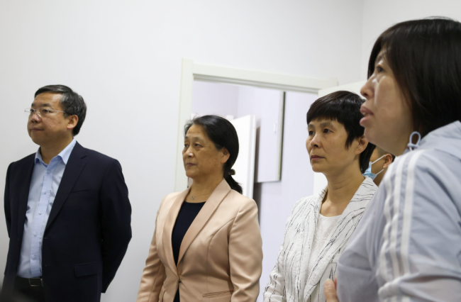 启动仪式后,邵华在校领导的陪同下前往我校网络文明素养教育实践基地开展考察调研,实地参观调研了14号楼“文化家”、人文学院“融媒体中心实训室”和“智慧互动录播室”